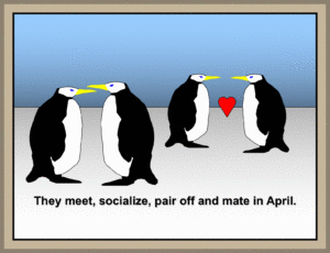 Emperor Penguins This whimsical MP4 video shows how thermal design issues affect the family life of emperor penguins. The author put it together long before March of the Penguins came out and with a much smaller budget. We do include some technical details that were glossed over in the movie. Make sure you turn up your sound (although you won’t hear Morgan Freeman narrating).